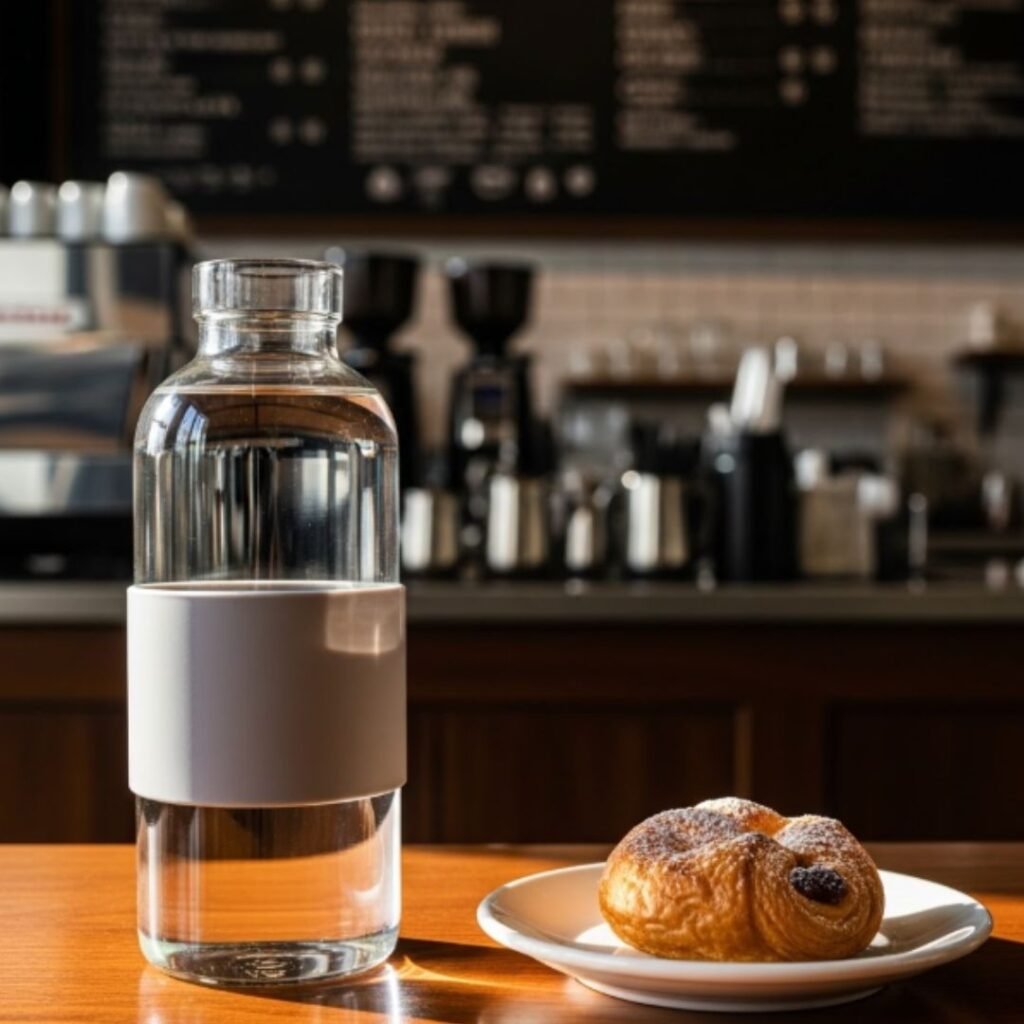 Botella elegante con funda de silicona para mantener la hidratación durante la lectura.
